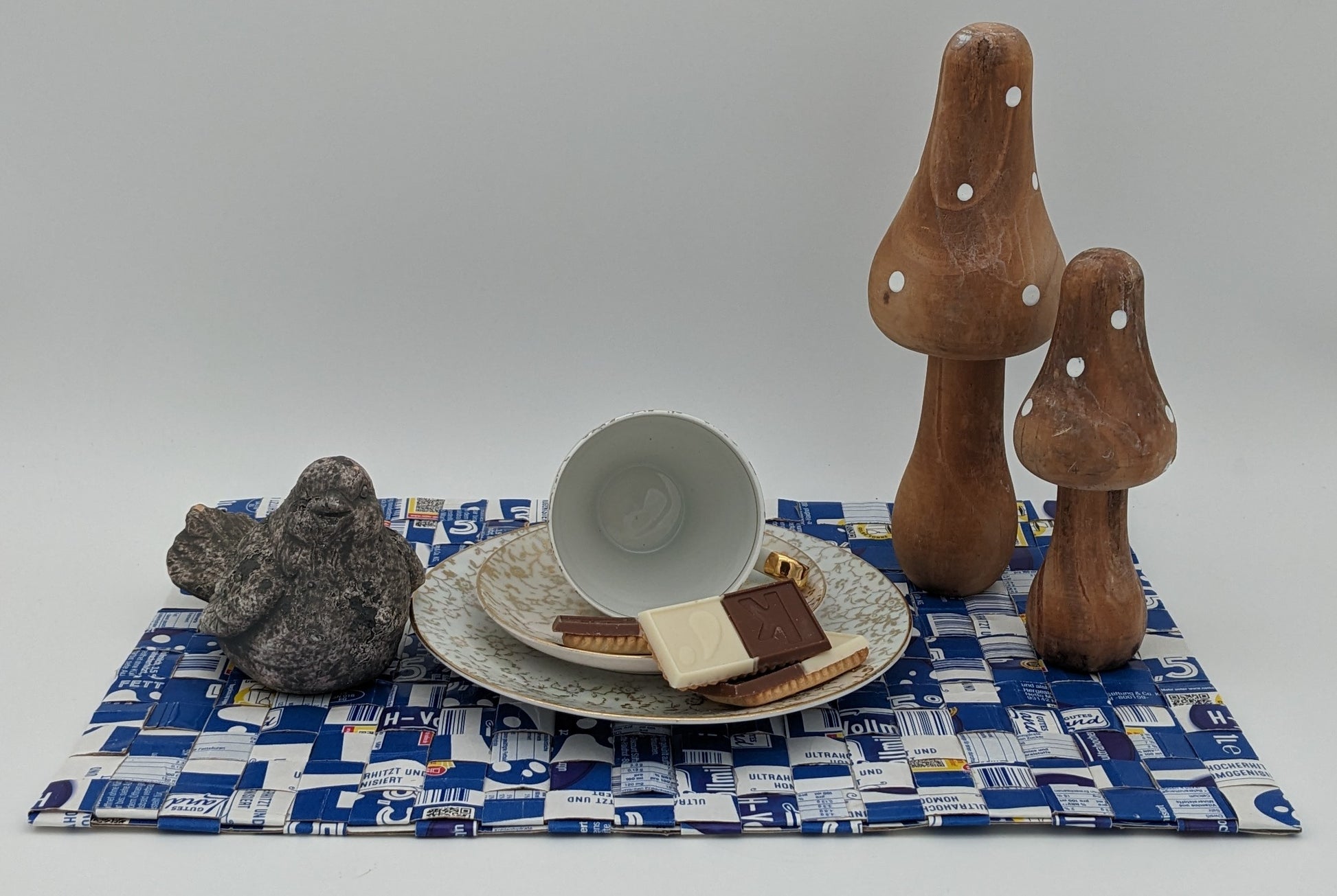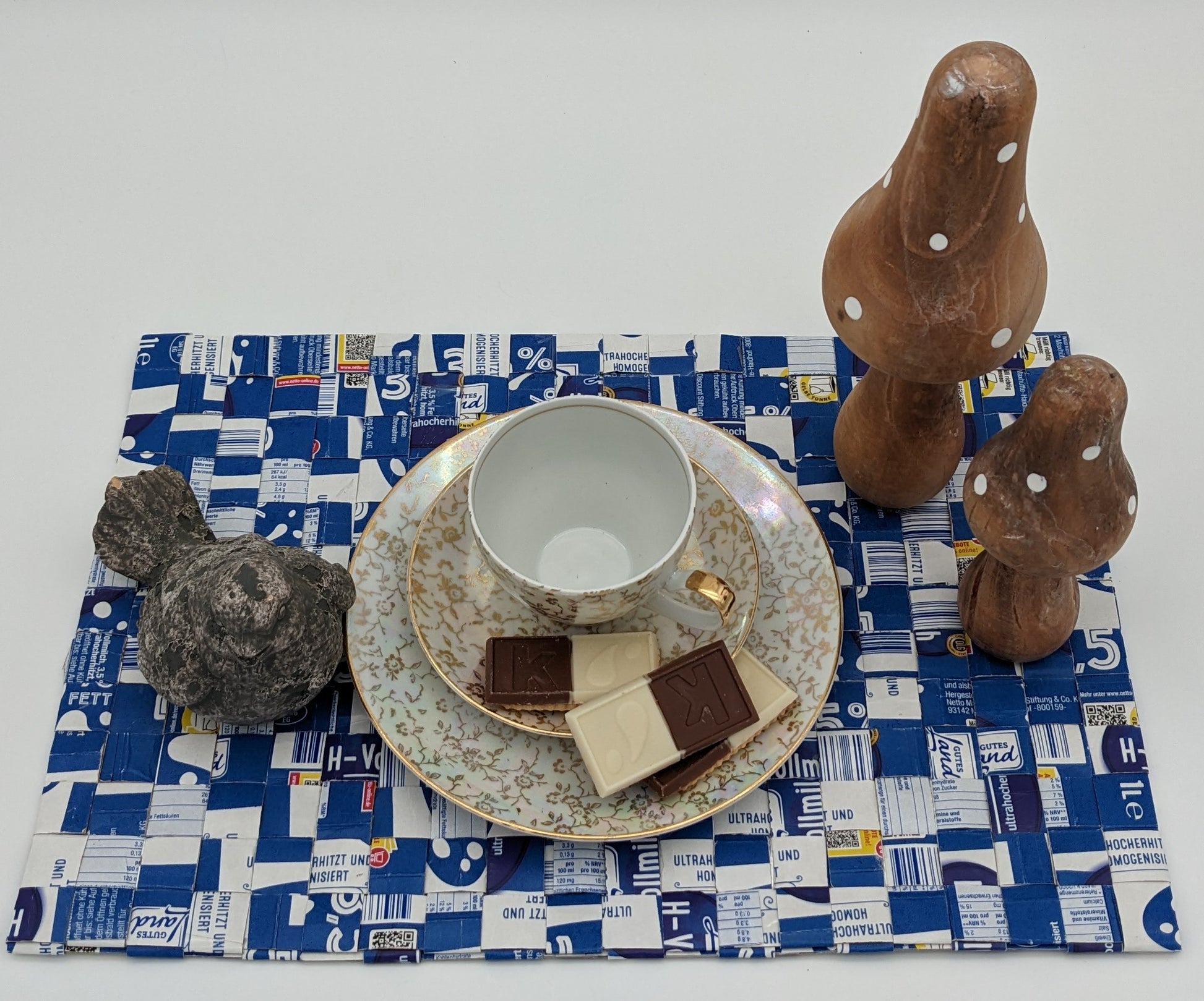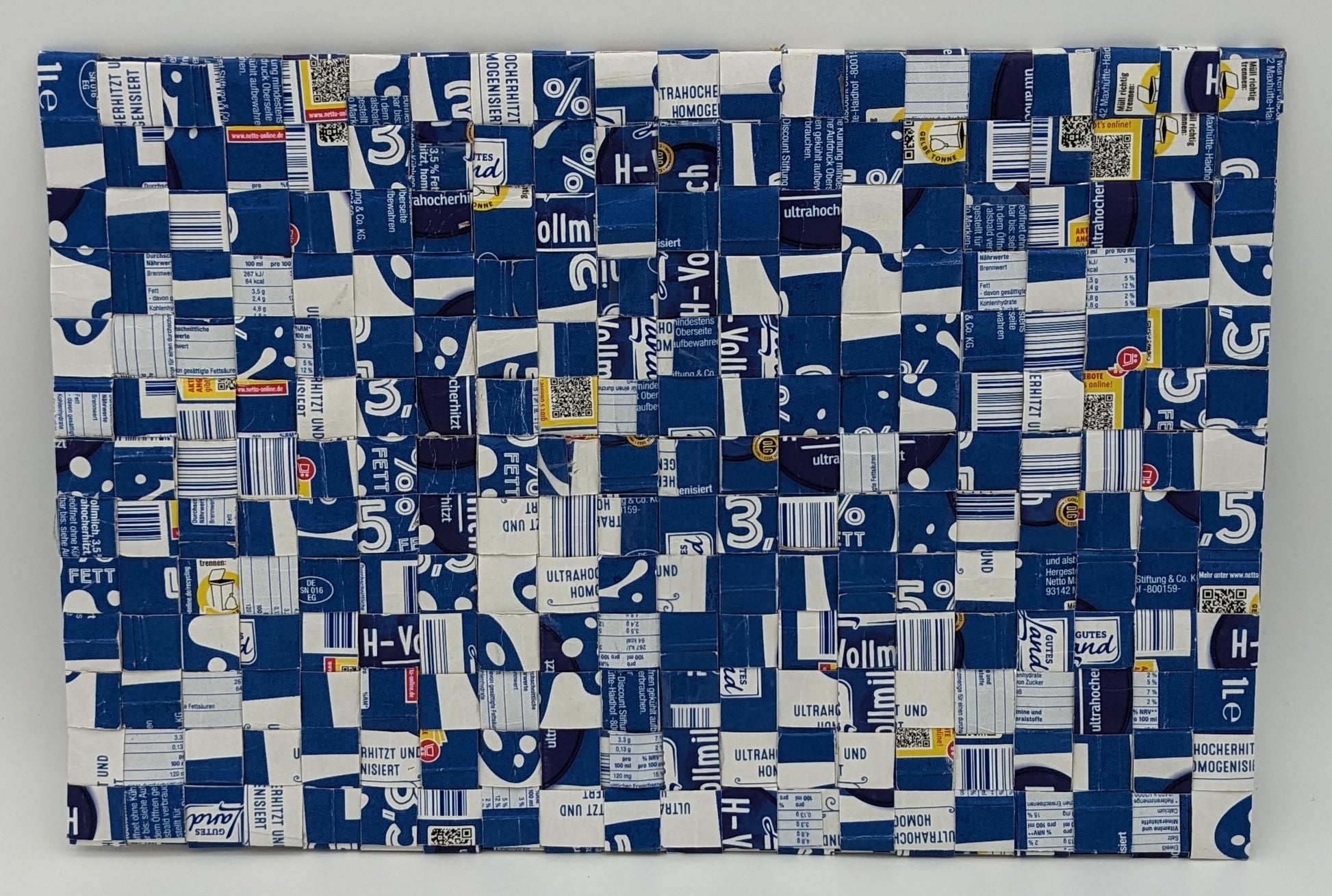 Aus den Resten von 3,5%-Fett-Milchtetrapacks, die nicht für die Herstellung einer Tasche verwendet werden können, entsteht eine einzigartige, beidseitig geflochtene Tischunterlage. Jedes Stück ist ein nachhaltiges Unikat, das liebevoll gefertigt wurde, um auch die kleinsten Materialien sinnvoll zu verwerten. Die geflochtene Struktur macht die Unterlage robust und langlebig, während die schlichte Optik sich perfekt in jedes Zuhause einfügt – ob als stilvolle Basis für einen schönen Kaffeetisch oder als dekoratives Element in anderen Bereichen. Durch die Wiederverwertung der Tetrapacks leisten Sie mit diesem Produkt einen kleinen, aber wertvollen Beitrag zu mehr Nachhaltigkeit.