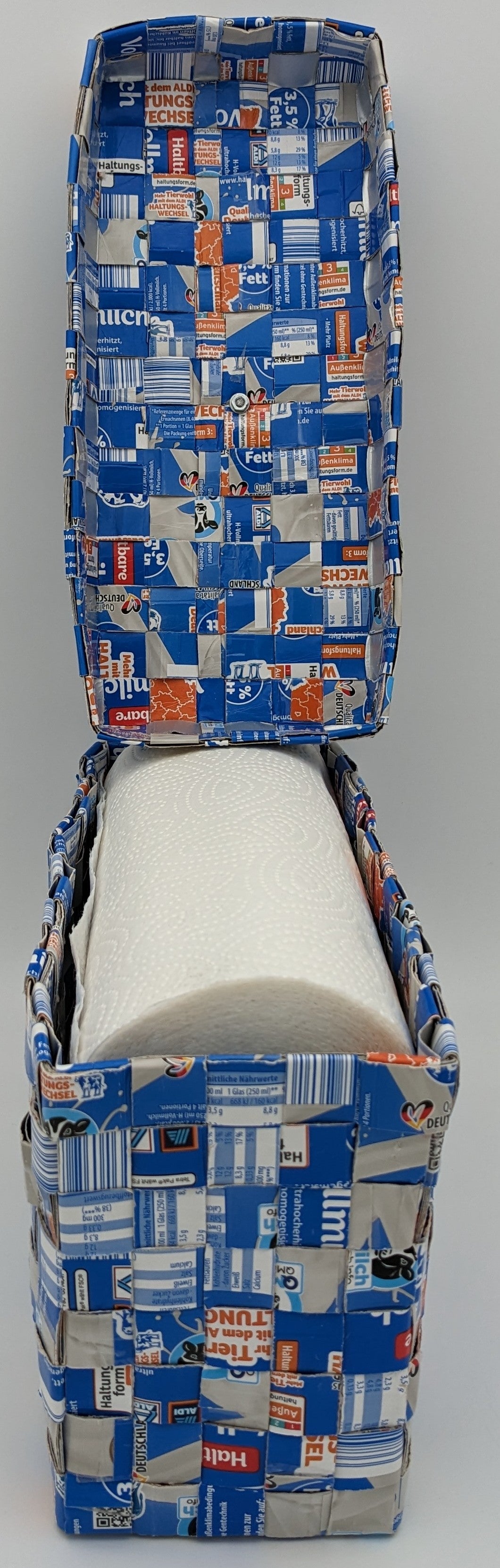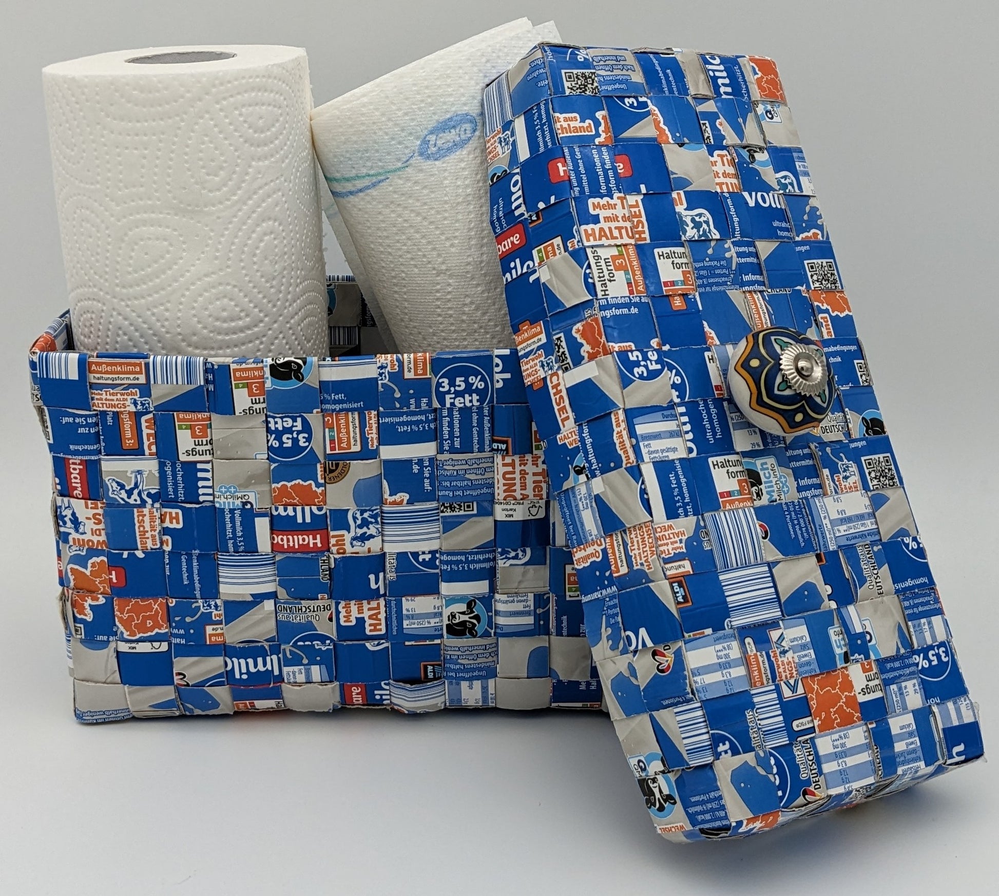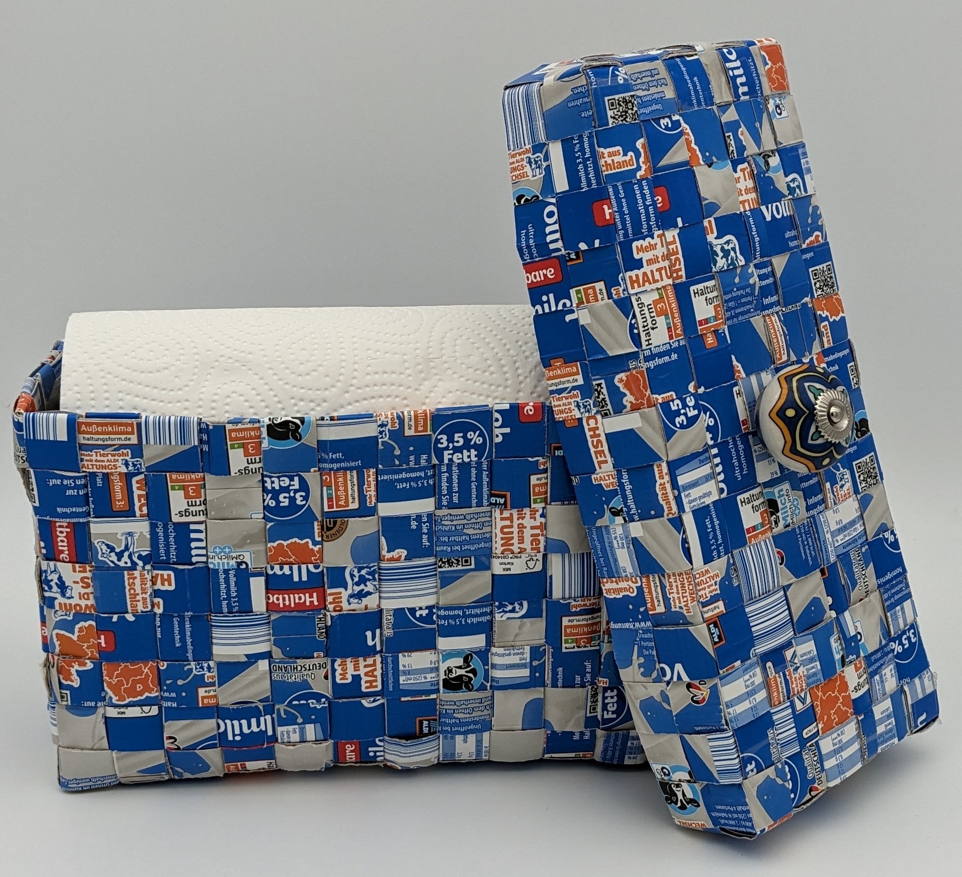 praktisches Utensilo mit Deckel aus Milchtüten-mit stilvollem Keramikknauf