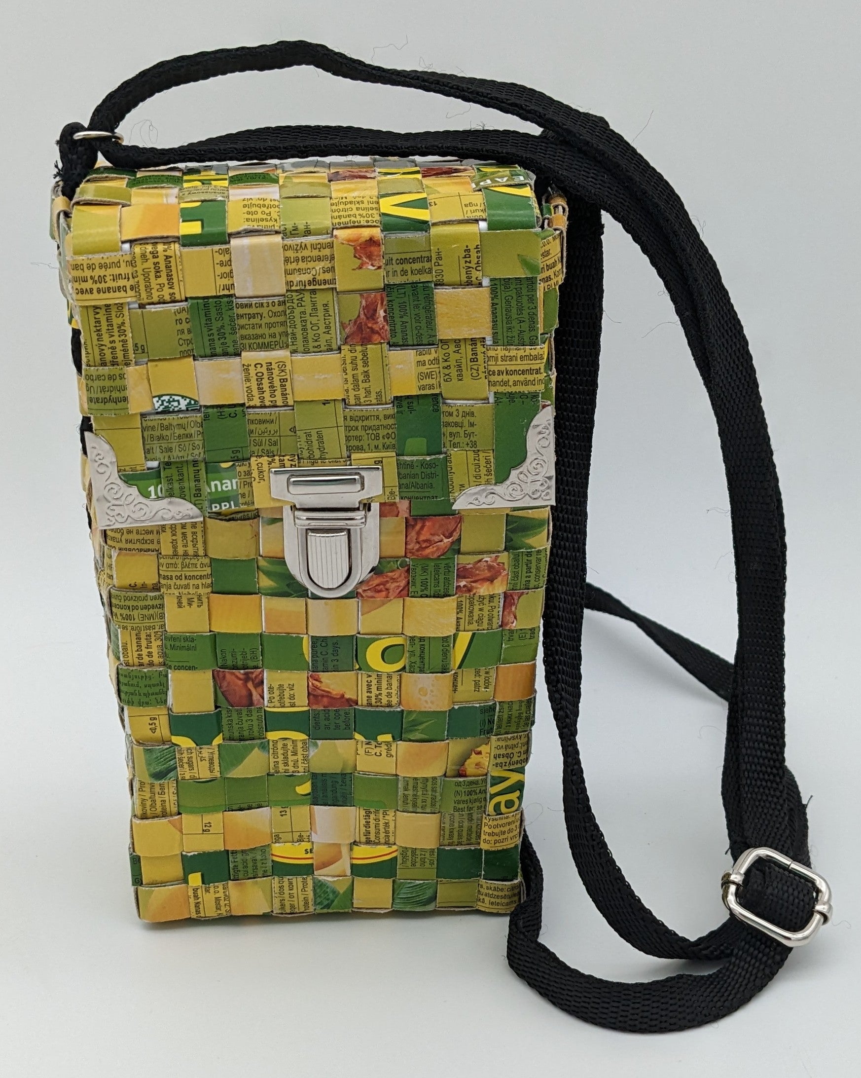 Entdecken Sie die handgefertigte Umhängetasche aus recycelten Safttüten – ein stilvolles und nachhaltiges Accessoire für jede Gelegenheit! Diese kreative Tasche ist geflochten und bietet nicht nur ein einzigartiges Design, sondern auch praktische Funktionen, die Ihren Alltag erleichtern.