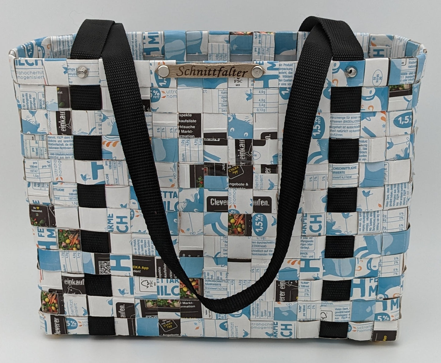 Die Tasche wird aus recycelten Tetrapack-Verpackungen hergestellt, wodurch ich aktiv zur Reduzierung von Abfall und zur Förderung einer nachhaltigen Lebensweise beitrage.