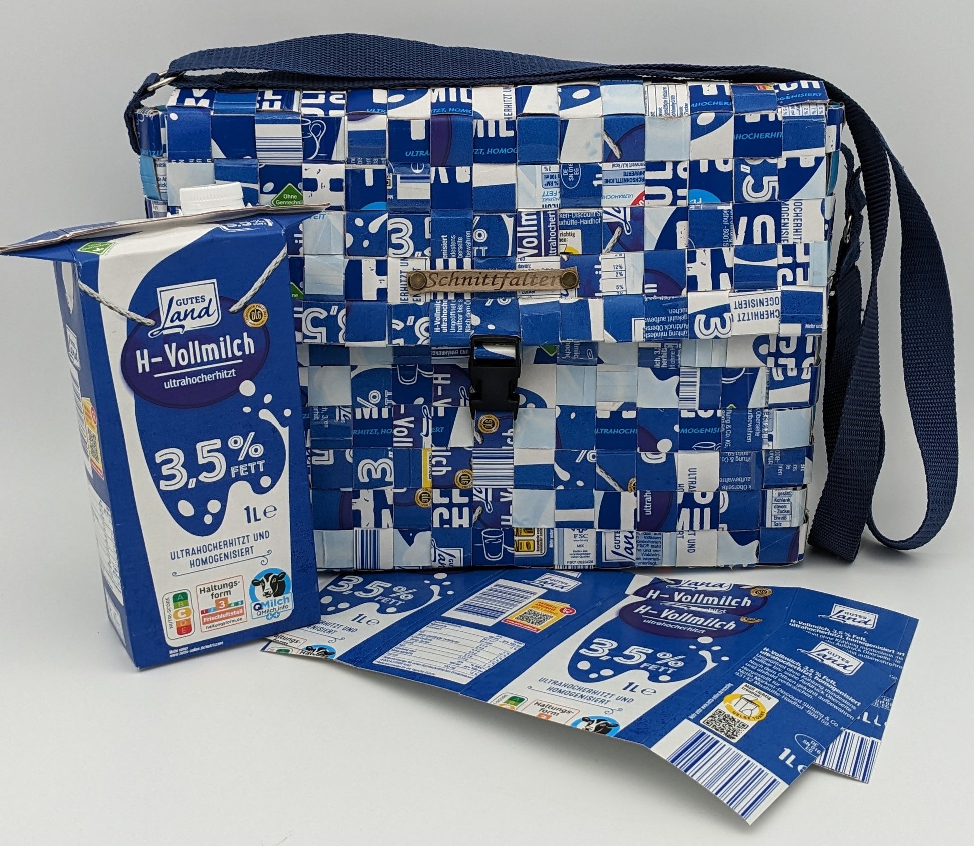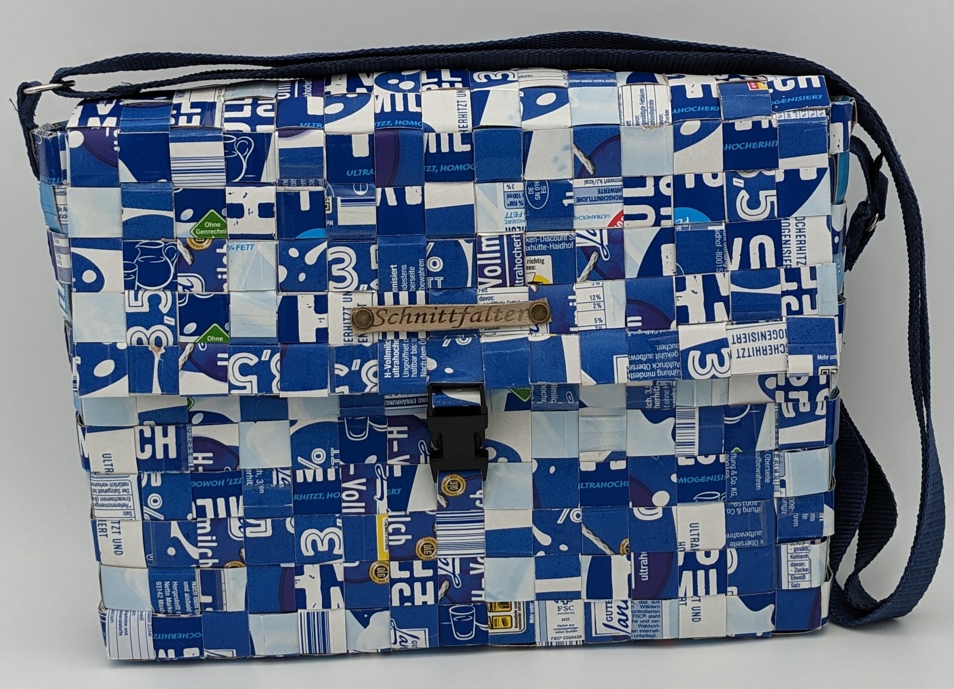 Umhängetasche aus 37 Milchtetrapacks -verstellbar und nachhaltig