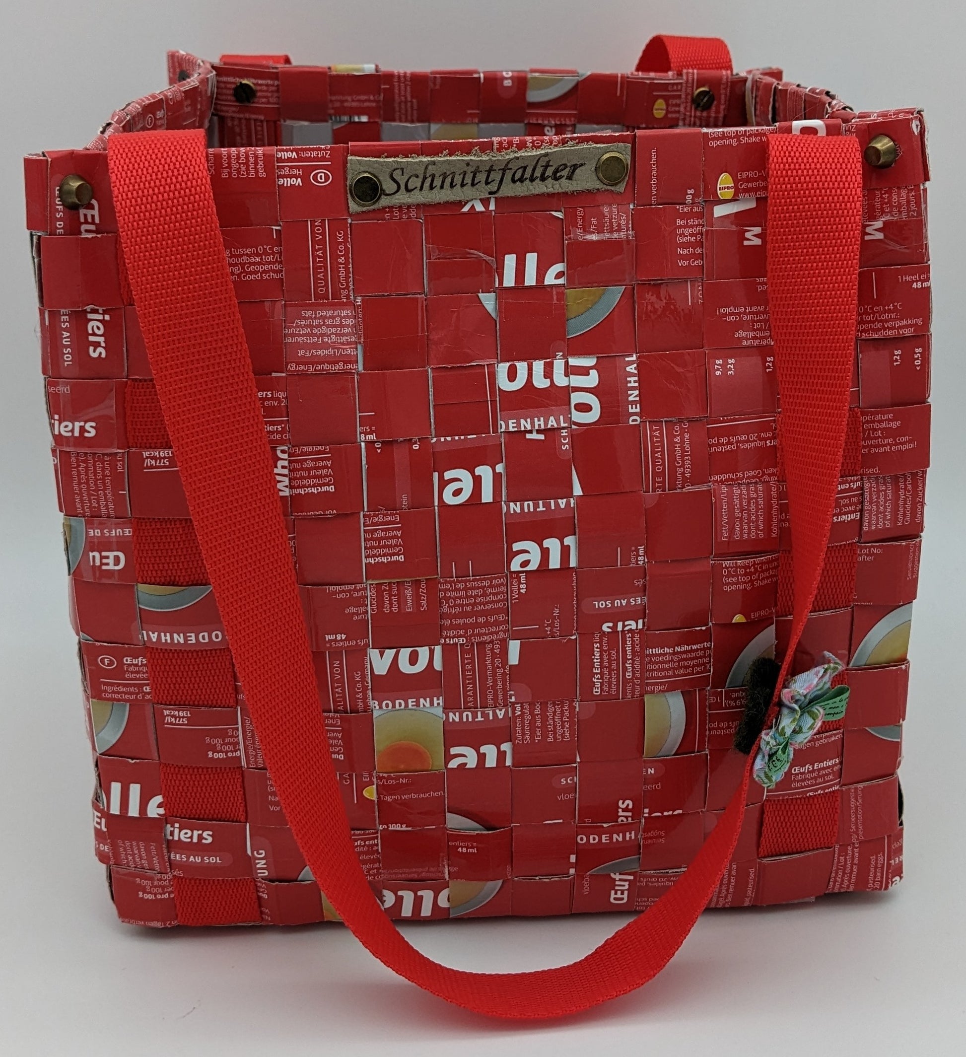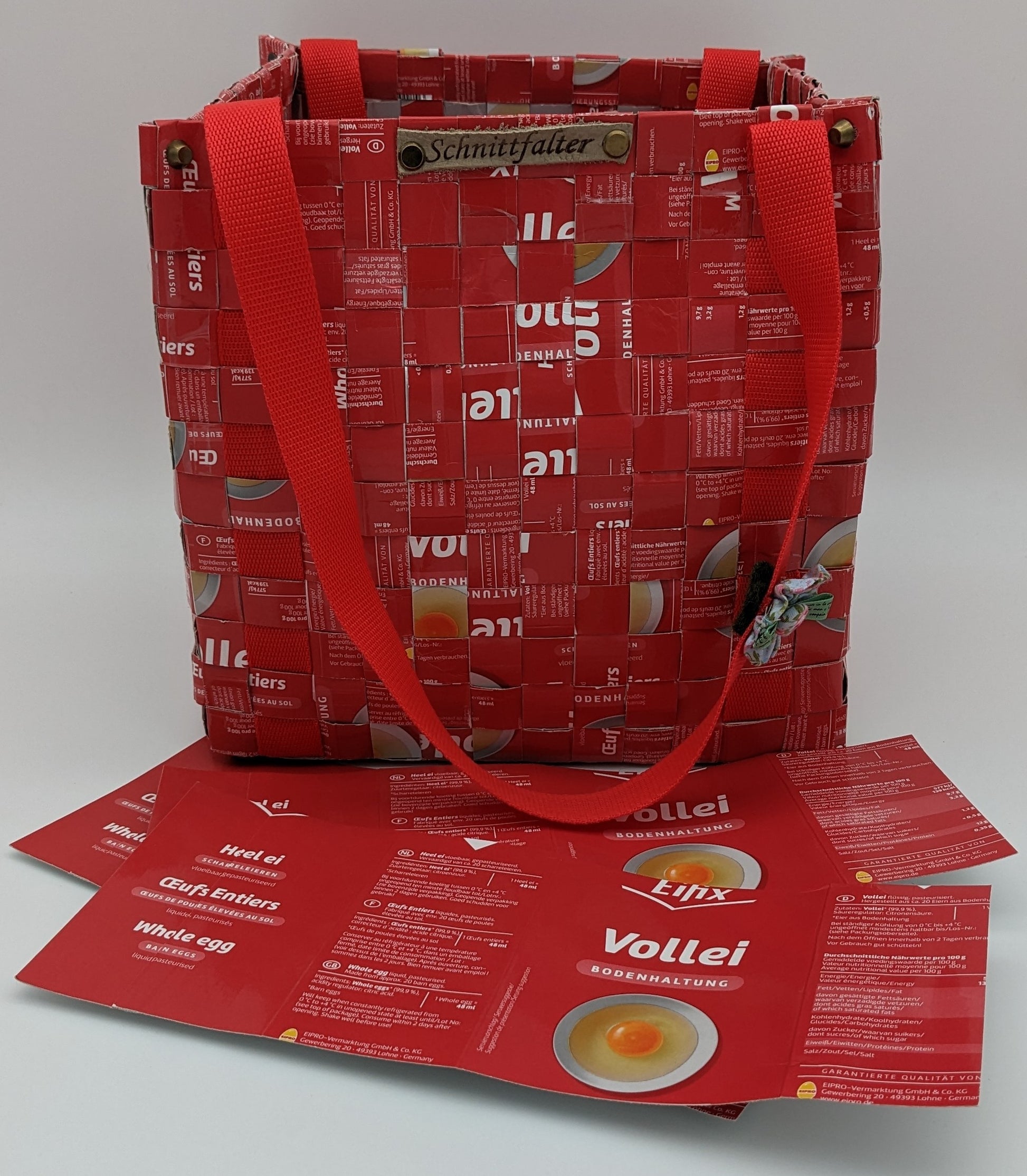 Diese robuste und stilvolle Einkaufstasche ist ein echter Hingucker und perfekt für deinen nachhaltigen Alltag! Hergestellt aus 36 Vollei-Tetrapacks, vereint sie Umweltschutz mit Funktionalität.